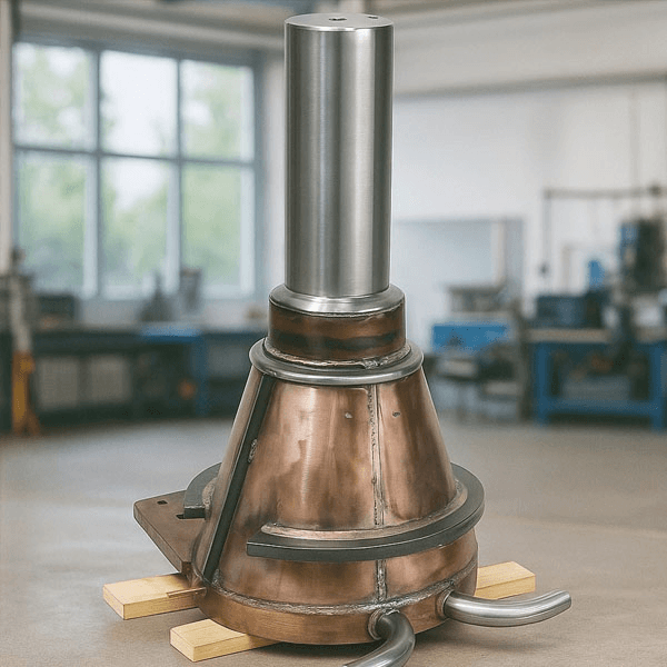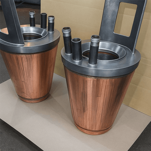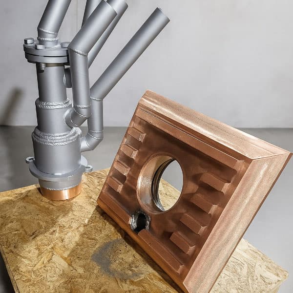 Водохлаждаемый кессон с газокислородной фурмой — это узел электросталеплавильной печи, обеспечивающий защиту газокислородной фурмы от высоких температур. Имеет систему водоохлаждения, головная часть кессона изготавливается из высококачественной меди